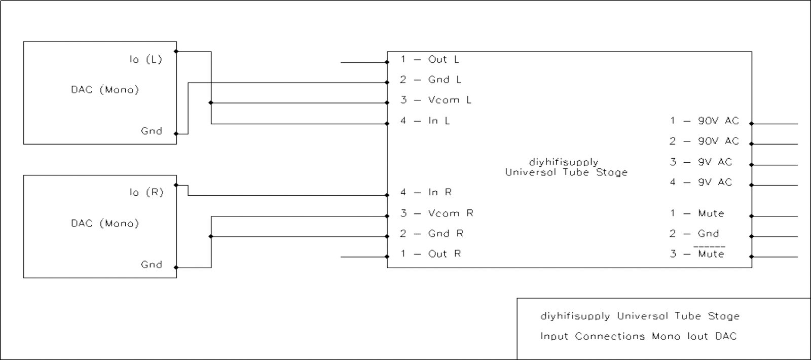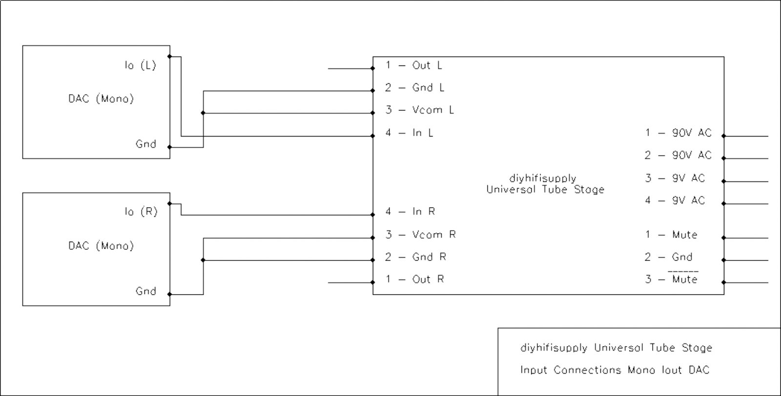3.03 – Settings and Input wiring for current output DAC, dual mono, single ended, 1mA full scale current, 0V reference voltage
