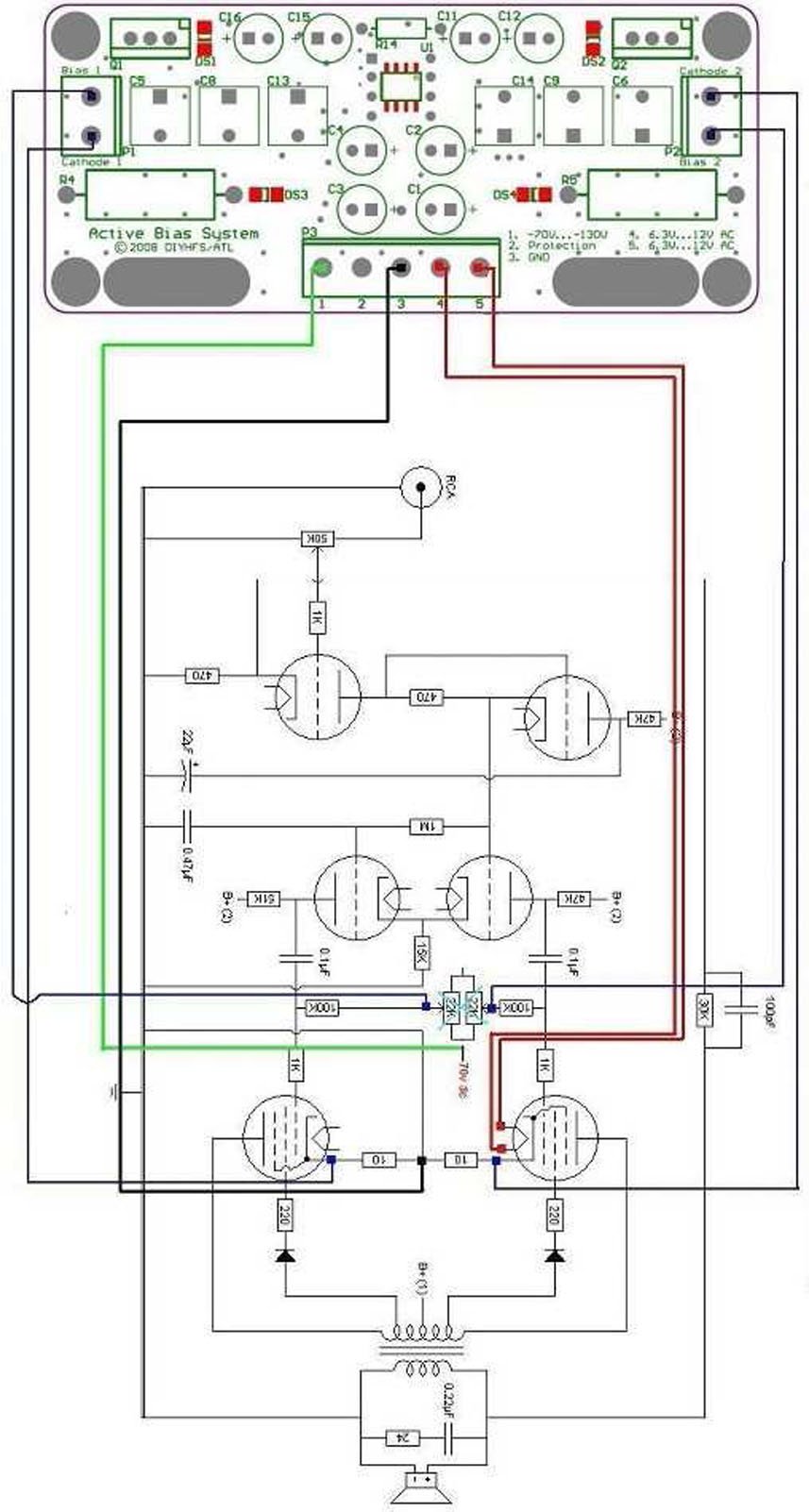 Tubes (that is the “left & right” or “upper & lower” pair in the schematic). All ABS PCB’s can share the same AC supply windings and bias voltage, as long as the same terminals are wired in parallel.