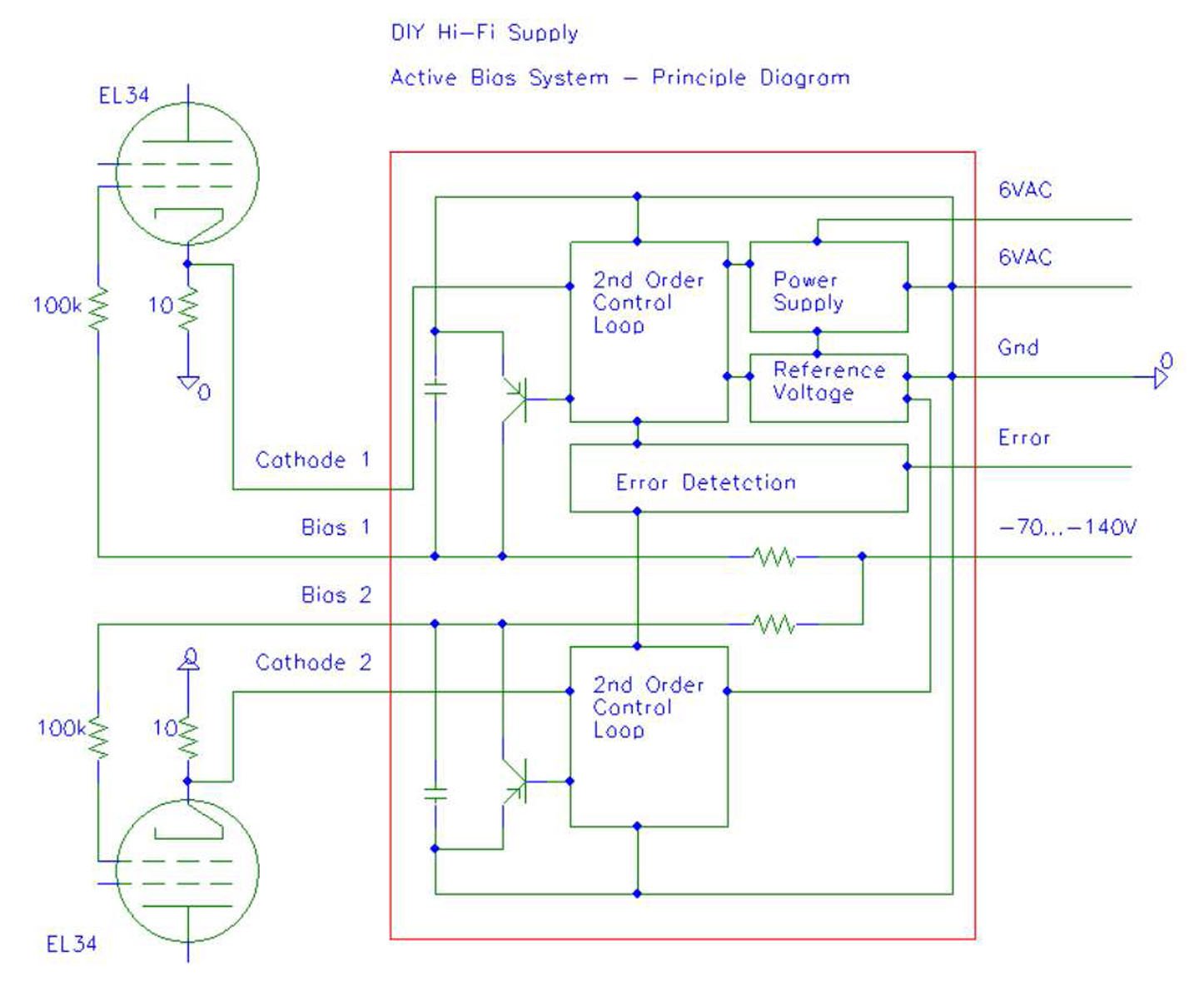 2. A Bias supply voltage that is sufficient to bias any tube you may wish to use (eg. many EL34 Amplifiers have insufficient bias voltage under load to reliably bias all KT88 and 6550 Valves (you need at least 70V to reliably bias these with 430V HT).