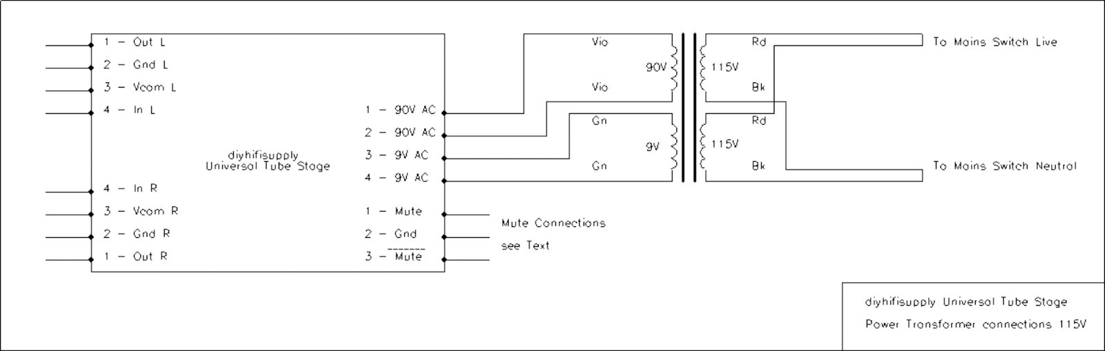 As this requires you to find the actual logic signal that controls the muting in the original equipment this is quite advanced and no simple guidance is possible. You will most likely require a copy of the service manual and the ability to read the schematics within. The Universal Tube Output Stage can accept mute signal that either mute when a “High” signal is present (use the connection labeled Mute) or that can mute when a “Low” Signal is present (use the connection labeled /Mute).