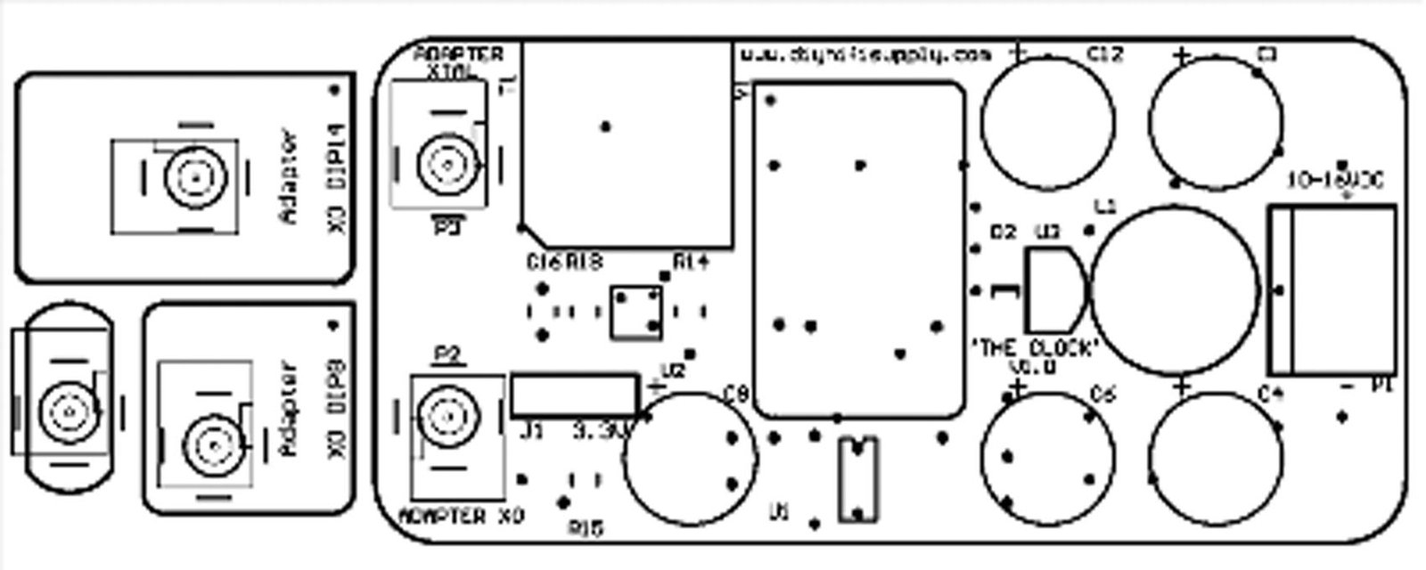 • The “Adapter XO” socket (P2) on ‘The Clock” is used with the 4-pin oscillator adapter.