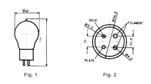 Dimensions and outline diagrams of the tube and base and the arrangement of electrode connections to the base terminals are shown in fig.1 and fig. 2.